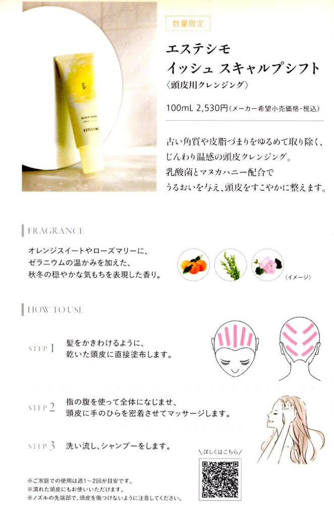【イッシュ・スキャルプシフト】(頭皮用クレンジング)をプレゼントいたします。